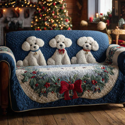 Navy Poodle Berry Quilted Sofa Cover NCU0HH1286