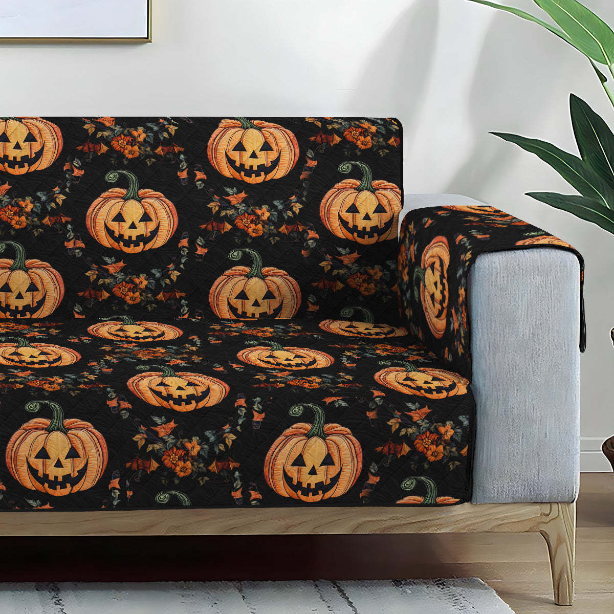 Pumpkin Delight Quilted Sofa Cover NCU0PT936