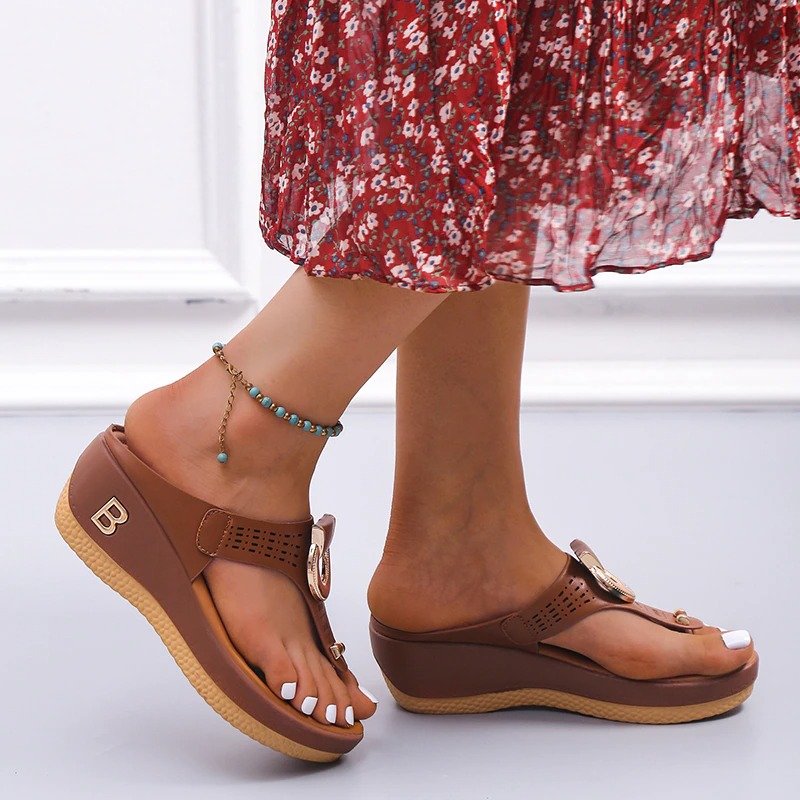 Women Orthopedic Sandals Metal Decoration Height Increasing Flip-flops